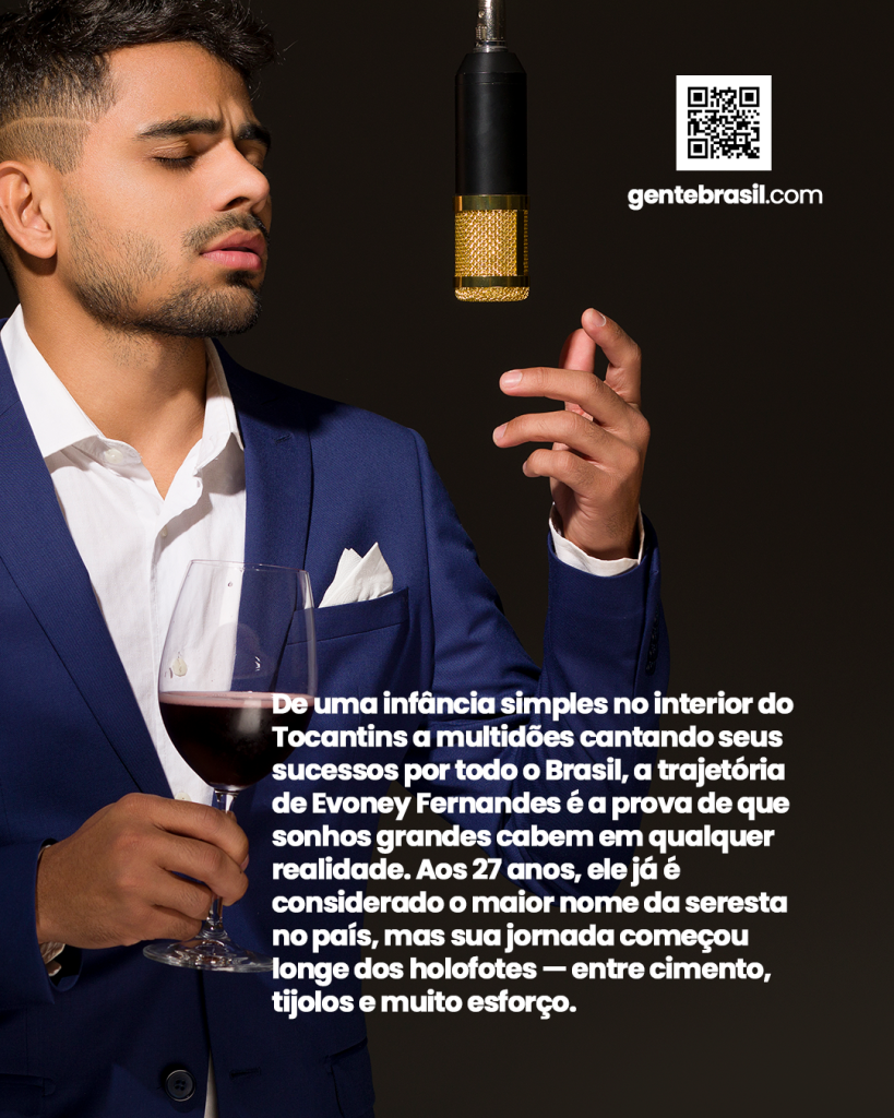 De uma infância simples no interior do Tocantins a multidões cantando seus sucessos por todo o Brasil, a trajetória de Evoney Fernandes é a prova de que sonhos grandes cabem em qualquer realidade. Aos 27 anos, ele já é considerado o maior nome da seresta no país, mas sua jornada começou longe dos holofotes — entre cimento, tijolos e muito esforço.