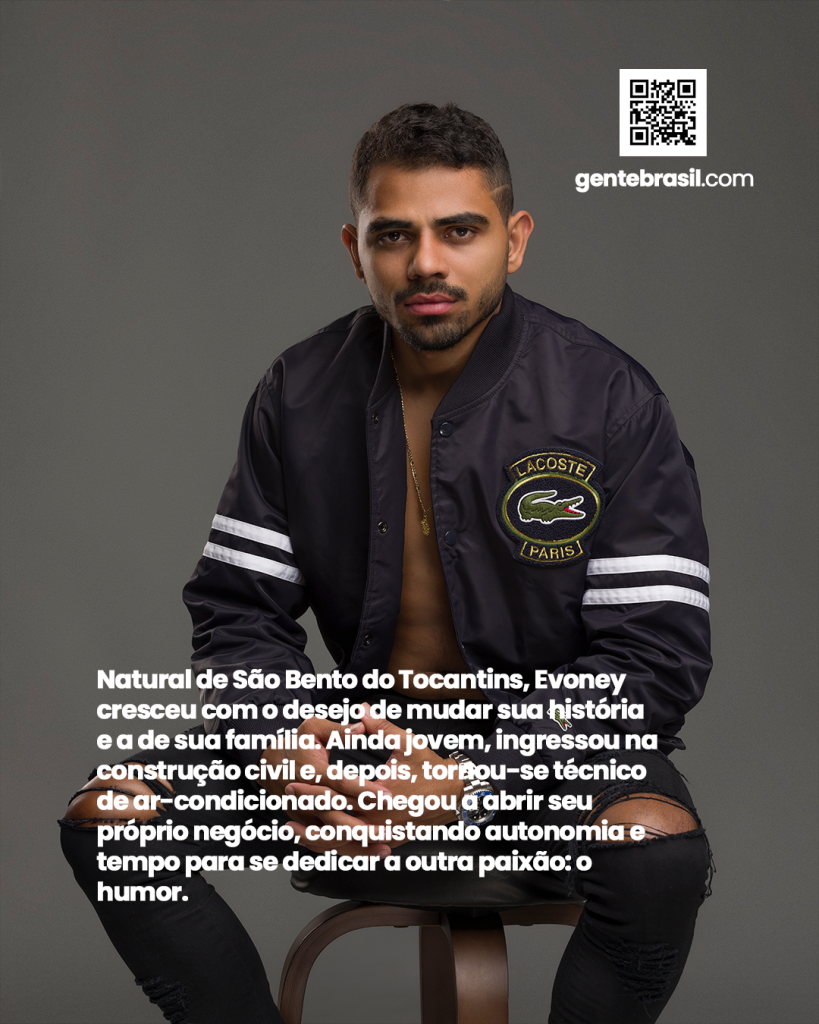 Natural de São Bento do Tocantins, Evoney cresceu com o desejo de mudar sua história e a de sua família. Ainda jovem, ingressou na construção civil e, depois, tornou-se técnico de ar-condicionado. Chegou a abrir seu próprio negócio, conquistando autonomia e tempo para se dedicar a outra paixão: o humor.