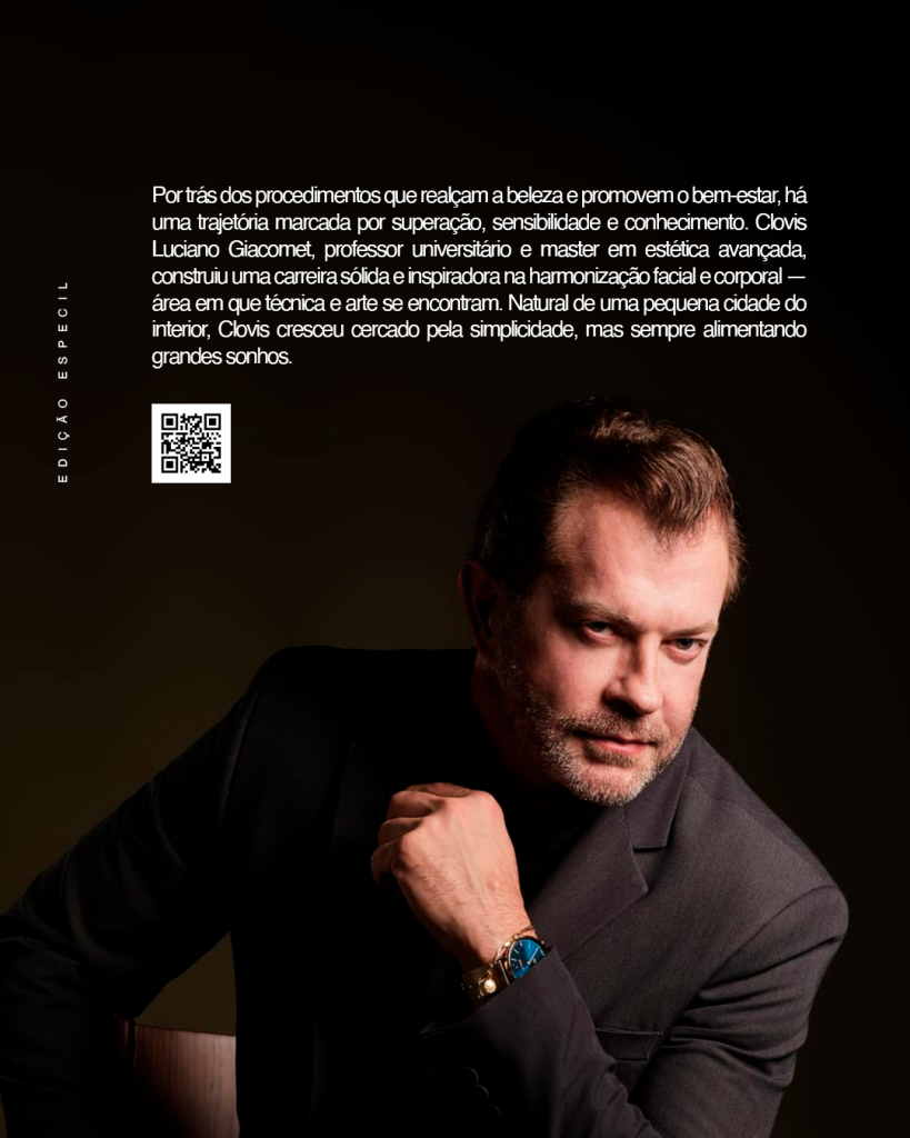 Com um olhar preciso, mãos habilidosas e um coração comprometido com a beleza que vem de dentro, Clovis Giacomet é hoje referência na estética brasileira e internacional. Sua trajetória inspira profissionais e emociona pacientes, reafirmando que a verdadeira harmonização começa quando ciência, arte e humanidade caminham juntas.