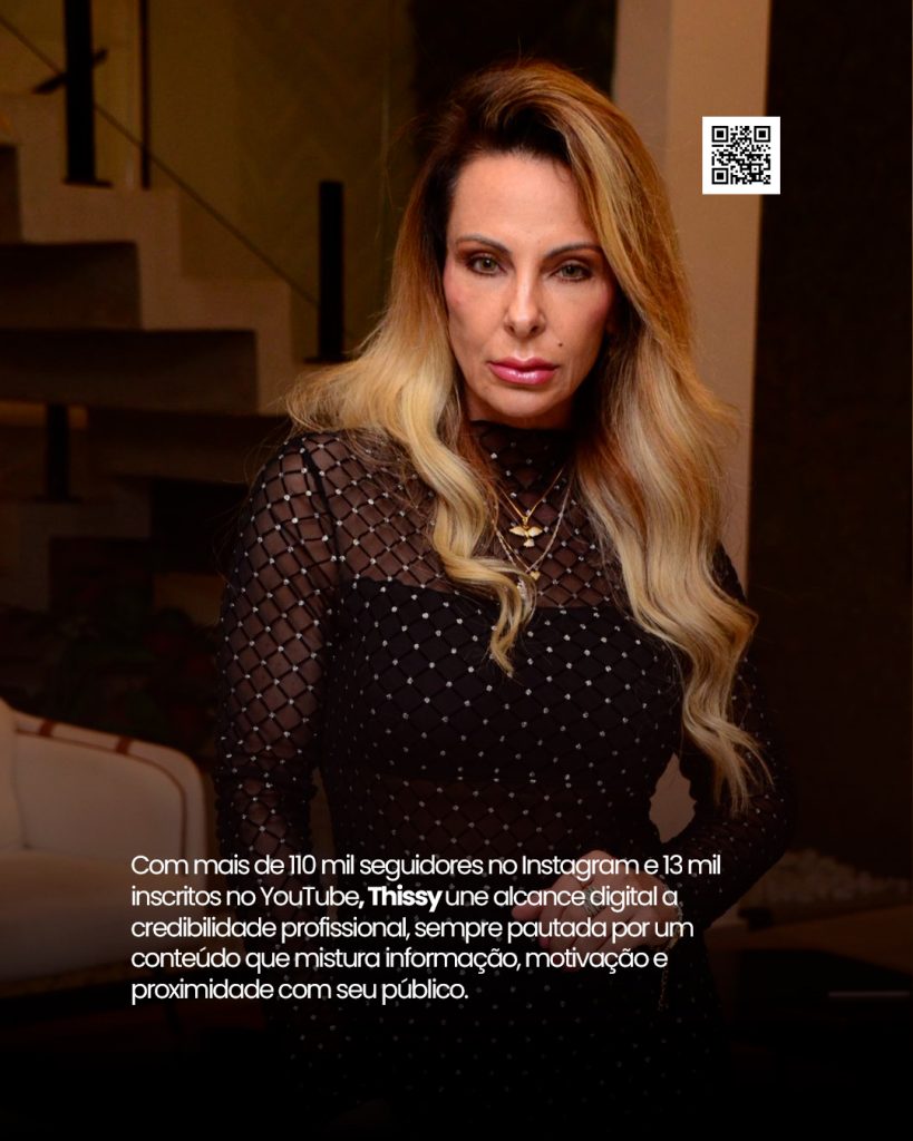 Com mais de 110 mil seguidores no Instagram e 13 mil inscritos no YouTube, Thissy une alcance digital a credibilidade profissional, sempre pautada por um conteúdo que mistura informação, motivação e proximidade com seu público.